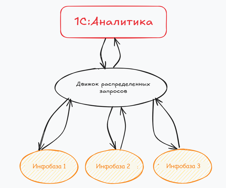 То с новым механизмом появится возможность обращаться к данным из нескольких информационных баз как к единому источнику данных: