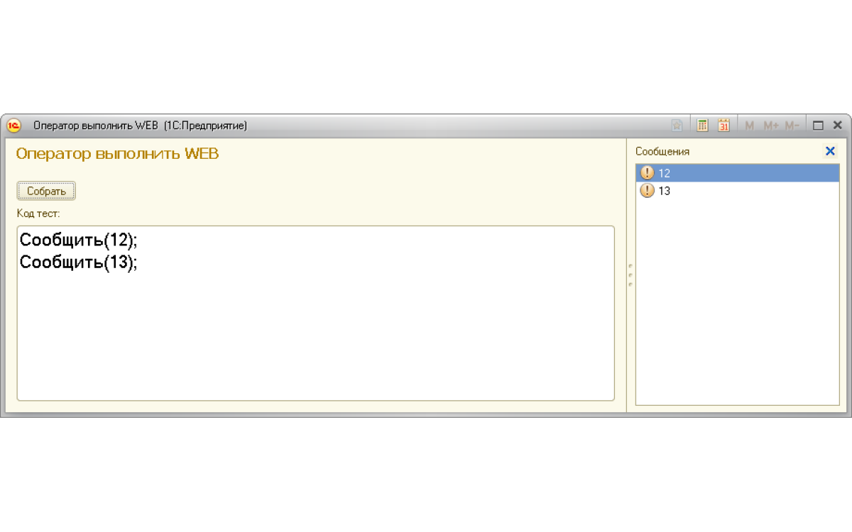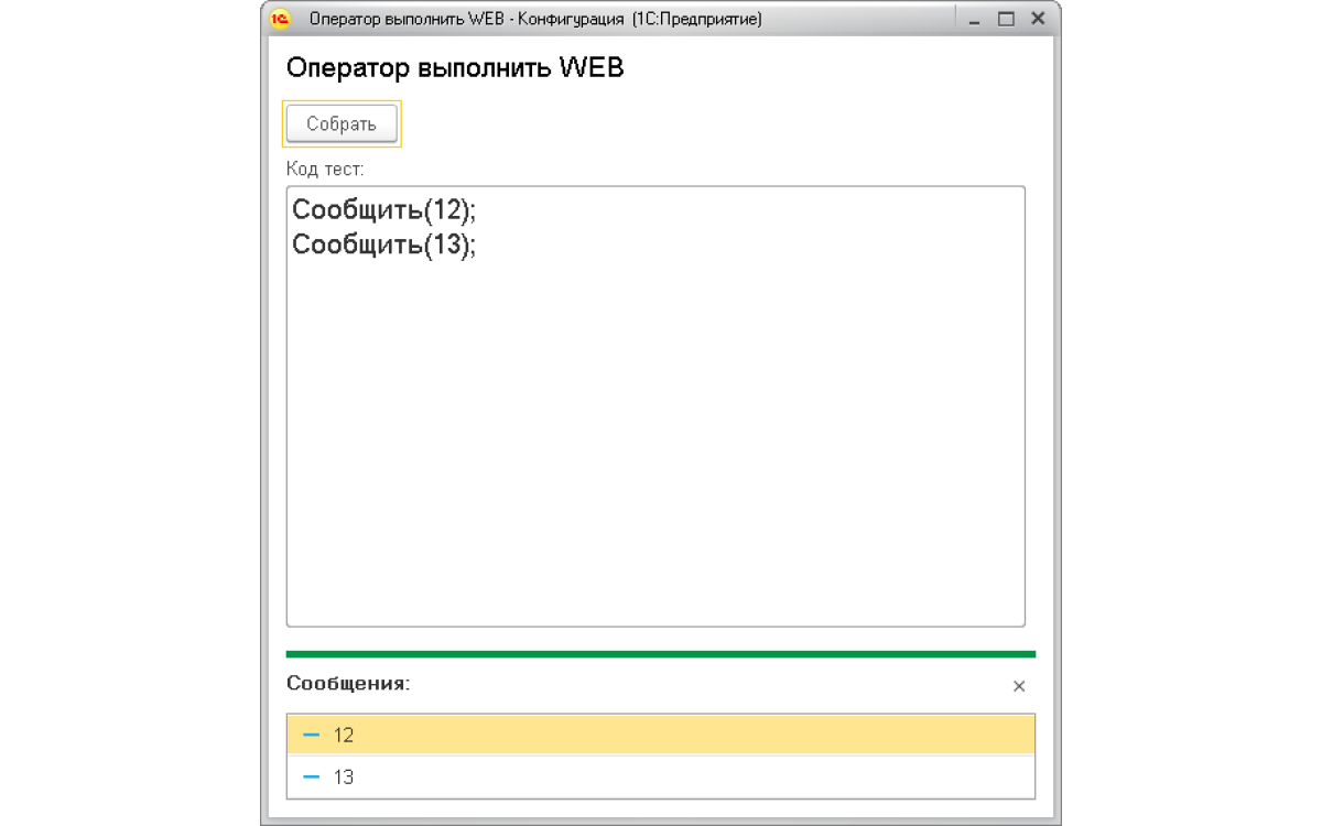 При этом известно, что WEB клиент и мобильный клиент имеют компьютерную серверную часть, которая имеет возможность подключения внешней обработки. А это значит, что аналог оператора Выполнить можно реализовать следующим образом: